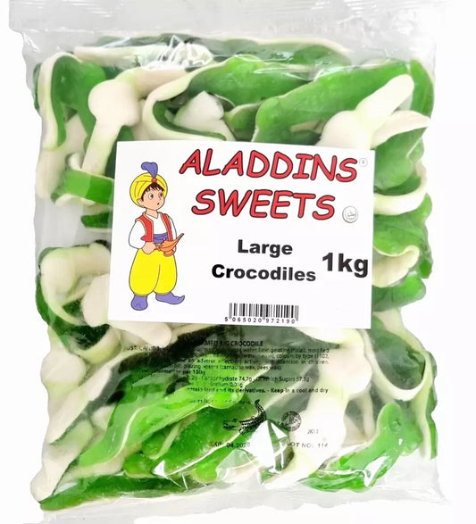 1kg Large Jelly & Foam Green Crocodiles Halal Aladdins Sweets