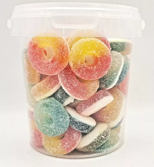 500g Sour Peach Rings Jellies, Halal Aladdins Sweets Tub