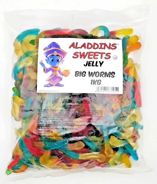 1kg Jelly Big Worms - Halal Jellies - Aladdins Sweets Bags
