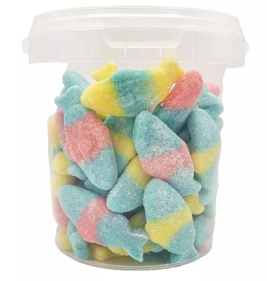 500g Sour Neon Fish Jellies, Halal Aladdins Sweets Tub