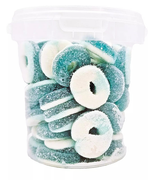 500g Sour Blue Rings Jellies, Halal Aladdins Sweets Tub