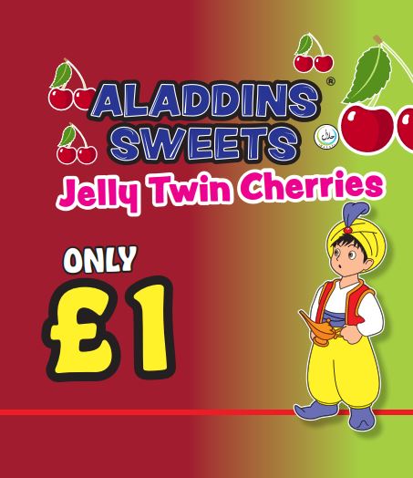 1kg Sour Twin Cherries Halal Jellies Aladdins Sweets Jelly Bag