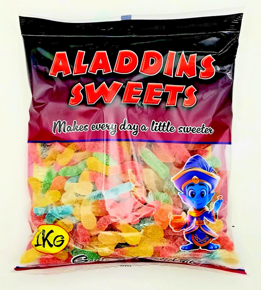 1kg Sour Big Worms Halal Jellies Aladdins Sweets Jelly Bag