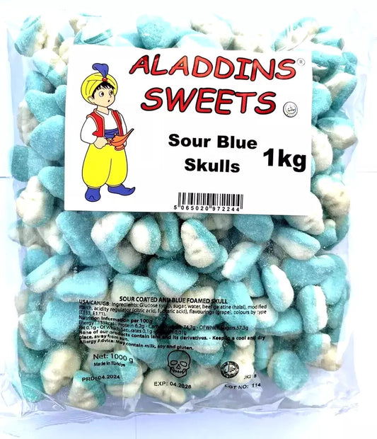 1kg Halal Fizzy Sour Jelly Blue Skulls Aladdins Sweets