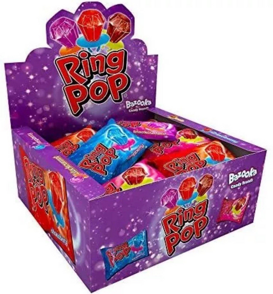 24 x 10g Bazooka Ring Pop - Hard Candy Rings - 10g Retro Diamond Lollipops - Assorted Flavours