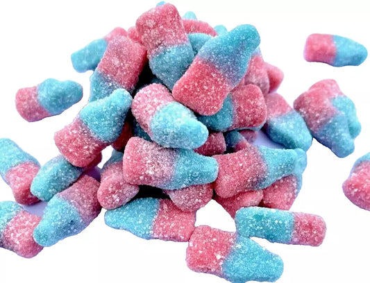 1kg Fizzy Sour Jelly Pink Blue Bubblegum Bottles Halal Aladdins Sweets