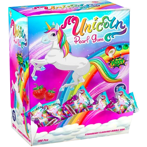 PACK OF 200 UNICORN PEARL BUBBLE GUM LIQUID CENTRE GUM