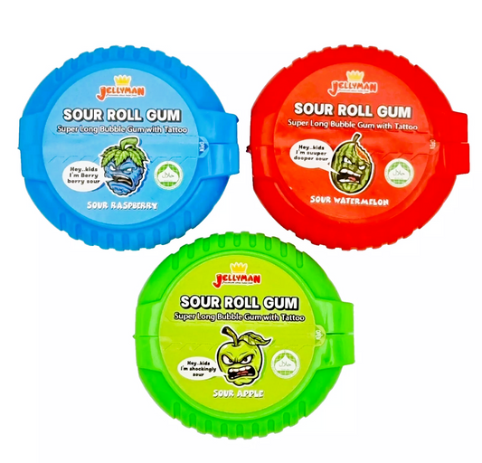 Pack of 36 SOUR Mega Roll Bubble Gum tape with Tattoos Jellyman