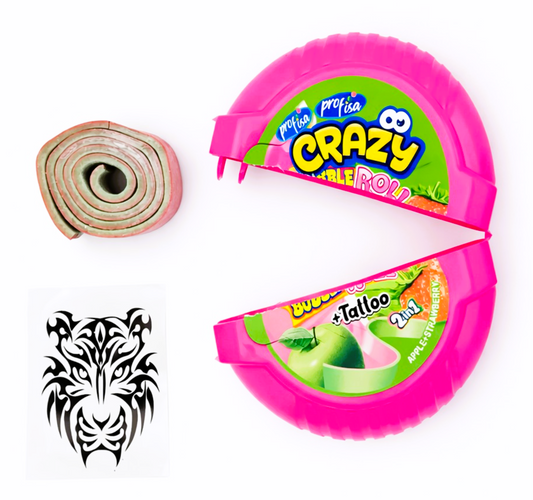 12 x 30g Bubble Gum Roll with Tattoo - Crazy 2 in 1 - Apple & Strawberry Party Bags