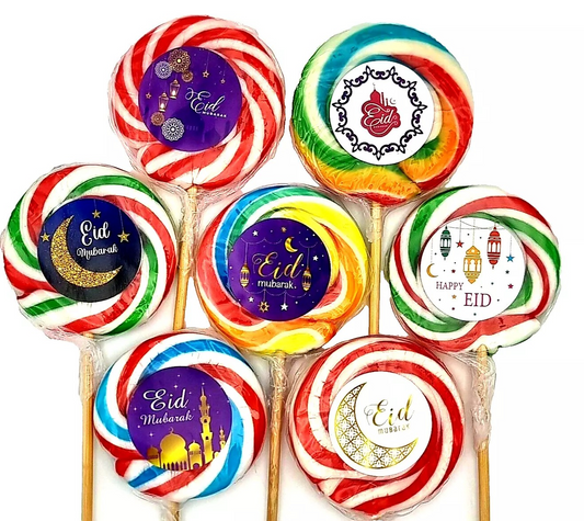 Pack of 25 Eid Mubarak Fruity Lollipops - Party Bags & Gifts - Halal Vegan Lollies