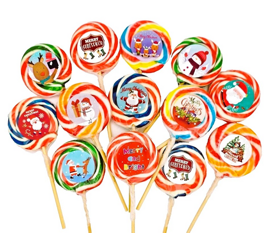 Christmas Large Fruity Lollipops - Party Bags & Gifts Sweets - Halal - Vegan Lollies - Snacks Candy